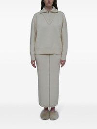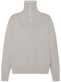 double-layer pullover jumper Highlights - Ivory white - Wool-cashmere blend - Double layer - Pullover design - Short front zip fastening - Mock neck - Long sleeves - Ribbed cuffs and hem - Straight hem Imported Composition Mercerized Wool 70%, Cashmere 30%