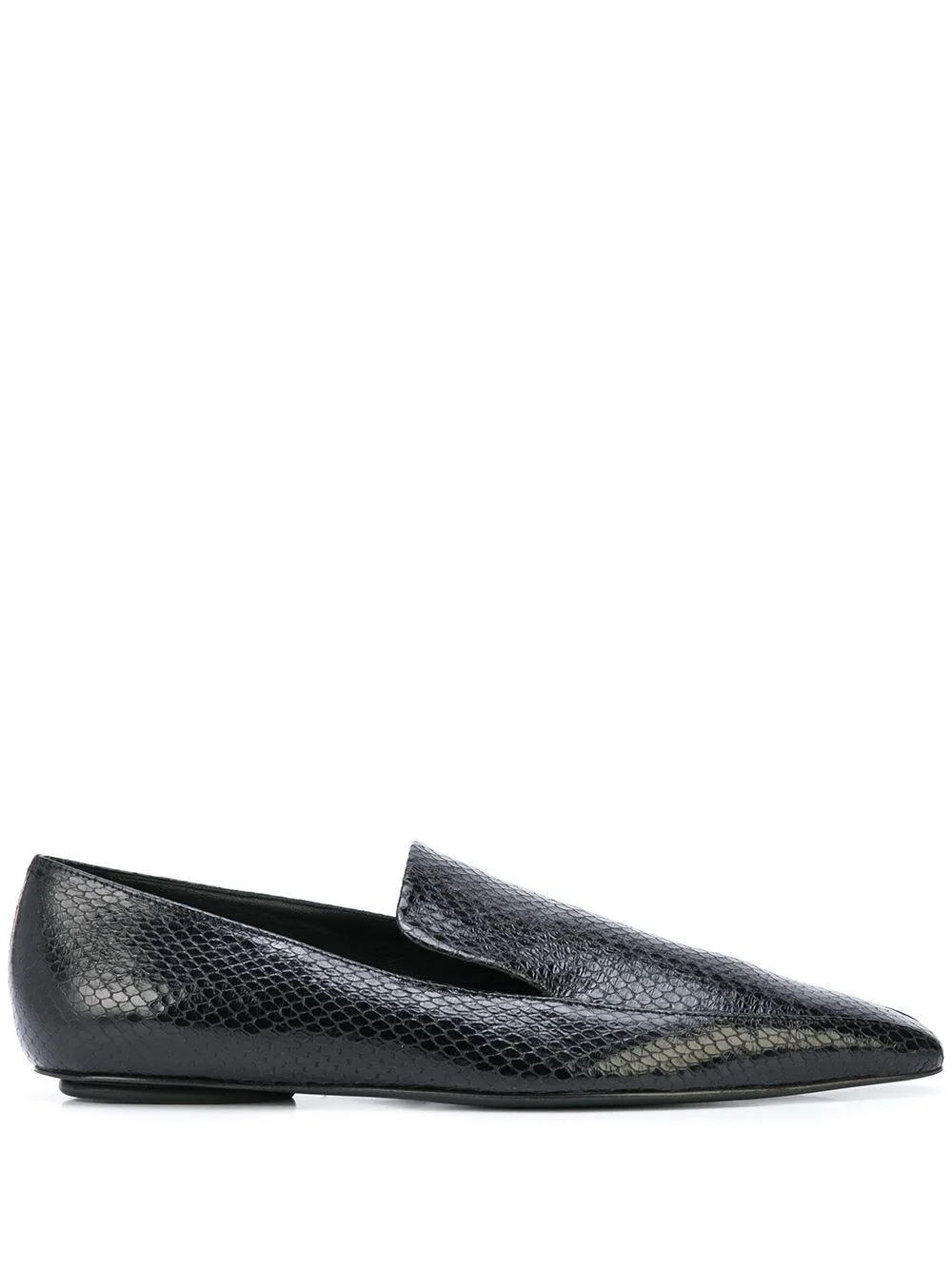 embossed square-toe loafers Black calf leather embossed square-toe loafers from Rosetta Getty featuring an embossed snakeskin effect, a branded insole, a slip-on style and a square toe. Made in Italy Composition Outer: Calf Leather 100%