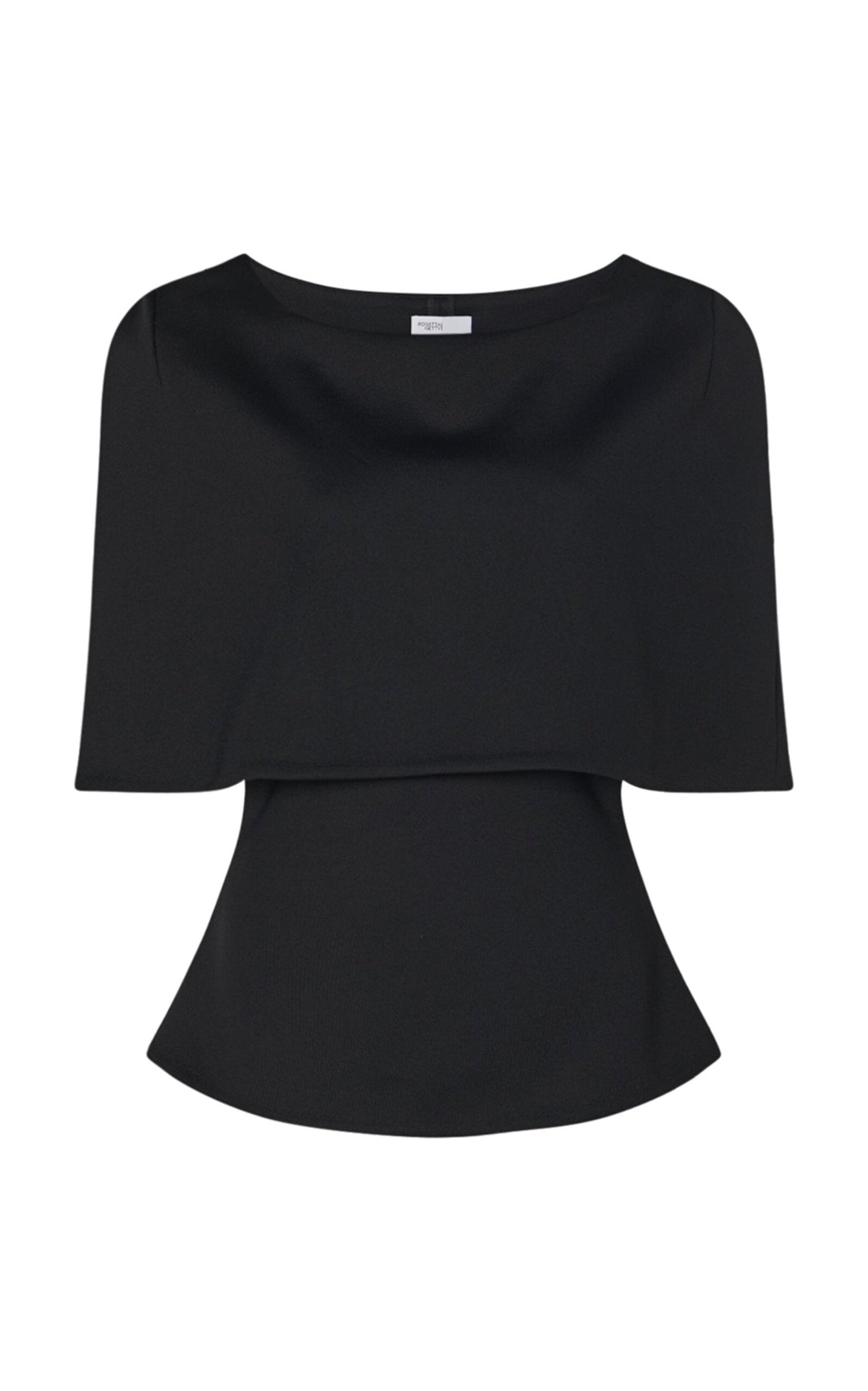 Cape-Detailed Scuba Knit Off-The-Shoulder Top black