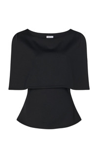 Rosetta Getty believes dressing should be effortless, so her basics are exceptionally versatile. Crafted from the label's signature Italian scuba double-knit, this top is designed as a slim T-shirt-style top with an elbow-length cape overlay that can be scrunched up at the neck or pulled tight off the shoulder and around the bust. PRODUCT DETAILS - Fall/Winter '24 - Slip on - Composition: 82% Nylon, 18% Elastane - Dry clean only - Made in the USA - This item is not eligible for expedited shipping SIZE & FIT - Designed for a slim fit
