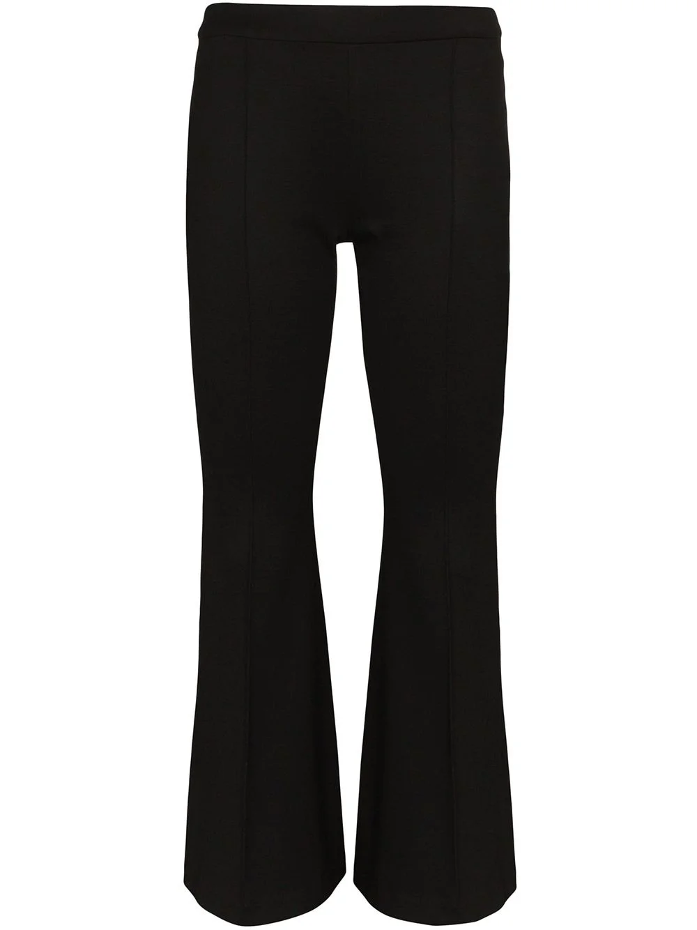 flared cropped trousers Who wears the stylish trousers in your relationship? Stride out in confidence with these black flared cropped trousers from Rosetta Getty that have a raised front seam that takes your look to new tailored heights. Strut in these beauties today. Featuring a mid-rise and side pockets. Made in United States Composition Viscose 96%, Spandex/Elastane 4% SIZE & FIT Model measurements Height 5 ft 9 in(1.74 m) Bust/Chest 33.46 in(85 cm) Hips 34.64 in(88 cm) Waist 25.19 in(64 cm) Measurement FRONT RISE 9.05 in(23 cm) HIPS 30.7 in(78 cm) WAIST 23.62 in(60 cm)