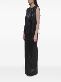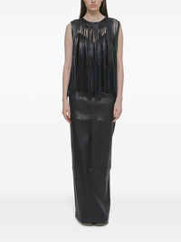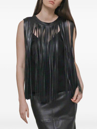 fringe leather top Highlights - Black - Calf leather - Glossy finish - Fringe detailing - Pull-on style - Round neck - Sleeveless Imported Composition CALFSKIN 100%