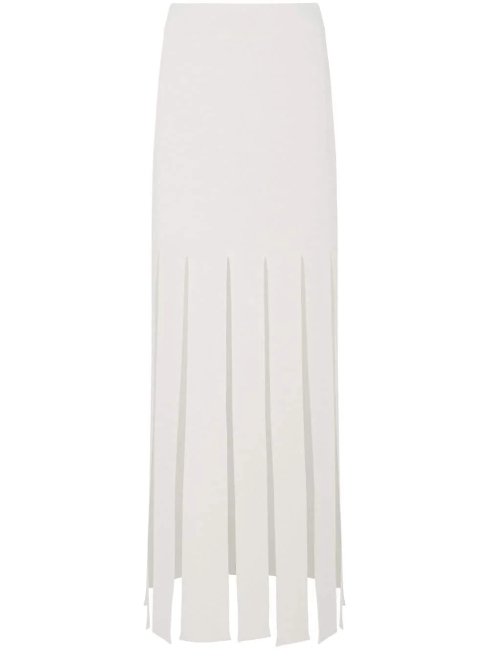 fringed maxi skirt Highlights - Cream white - Cotton-silk blend - Fringe detailing - Panelled design - Elasticated waistband - Pull-on style - Straight hem - Maxi Made in Italy Composition Cotton 80%, Silk 20%