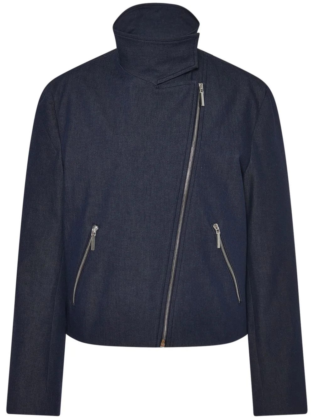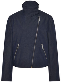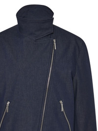 funnel-neck twill-weave jacket Highlights - Indigo blue - Cotton blue - Twill weave - Funnel neck - Off-centre front zip fastening - Long sleeves - Front zip fastening pockets - Straight hem Made in United States Composition Cotton 93%, Polyurethane 7%