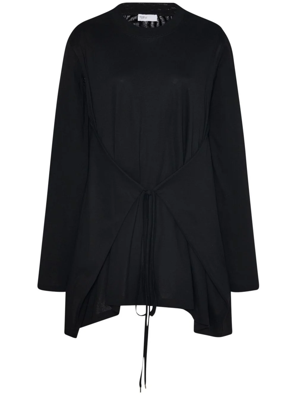 layered-design cotton T-shirt Highlights - Black - Cotton - Layered design - Round neck - Front tie fastening - Long sleeves - Flared hem Made in United States Composition Cotton 100%