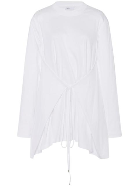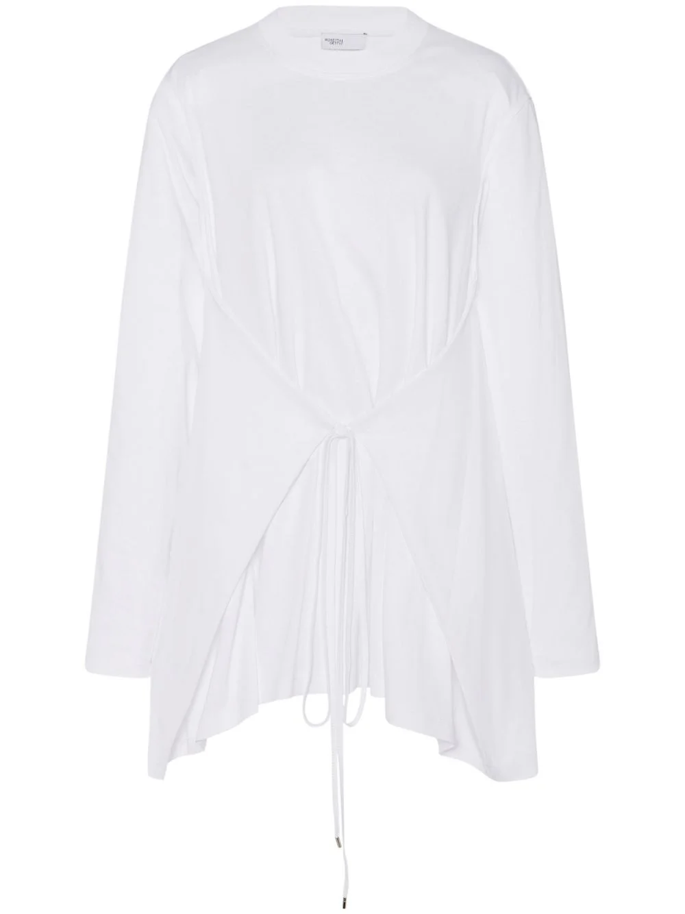 layered-design cotton T-shirt Highlights - Optical white - Cotton - Layered design - Round neck - Front tie fastening - Long sleeves - Flared hem Made in United States Composition Cotton 100%