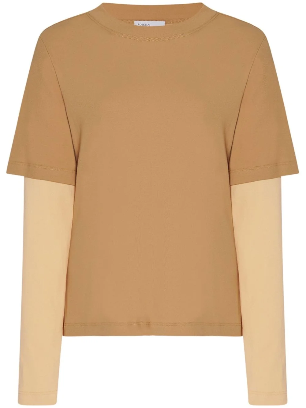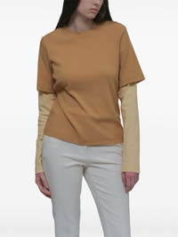 layered T-shirt Highlights - Camel/wheat - Organic cotton - Layered design - Crew neck - Long sleeves - Short sleeves - Straight hem Made in United States Composition Organic Cotton 100%
