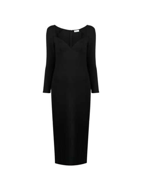 long-sleeve maxi dress jet black stretch-design sweetheart neck long sleeves rear zip fastening central rear vent straight hem Made in Italy Composition Body: Nylon 82%, Elastane 18% SIZE & FIT Model measurements Height 5 ft 11 in(1.8 m) Bust/Chest 28.34 in(72 cm) Hips 35.43 in(90 cm) Waist 23.62 in(60 cm) FittingInformation This piece fits true to size. We recommend you get your regular size Designed for a close fit at the bust, waist and hips Made with a mid-weight stretch fabric
