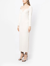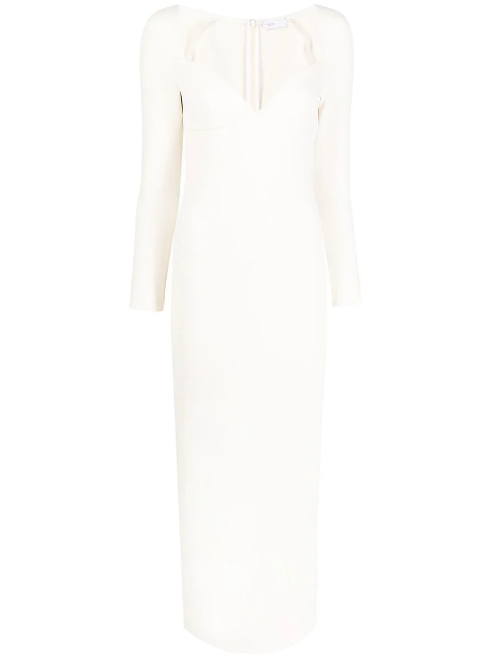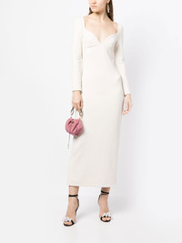 long-sleeve midi dress parchment white stretch-design sweetheart neck long sleeves rear zip fastening central rear vent straight hem Made in Italy Composition Body: Nylon 82%, Elastane 18% SIZE & FIT Model measurements Height 5 ft 11 in(1.8 m) Bust/Chest 28.34 in(72 cm) Hips 35.43 in(90 cm) Waist 23.62 in(60 cm) FittingInformation This piece fits true to size. We recommend you get your regular size Designed for a close fit at the bust, waist and hips Made with a mid-weight stretch fabric