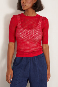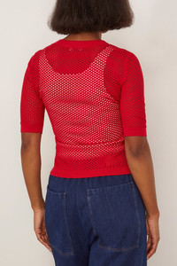 The Rosetta Getty Mesh Cropped Sleeve Sweater is perfect for layering or wearing solo. You'll love the mesh material of this short sleeve sweater with a slim silhouette. Wear yours with jeans and flats. FIT DESCRIPTION MODEL MEASUREMENTS - Fits true to size, take your normal size - Short sleeve sweater - Slim silhouette - Elbow length sleeves - Mesh material - Ribbed trim - 53% Cotton, 47% Acetate - Stylist note: This style is sheer - Kyndal is wearing a size XS - Bust: 32" - Waist: 24" - Hips: 35“ - Height: 5’6”