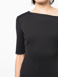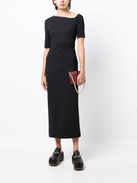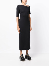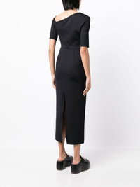 off-the-shoulder midi dress jet black stretch-design rear slit off-shoulder short sleeves mid-length Made in United States Composition Body: Nylon 82%, Elastane 18% SIZE & FIT Model measurements Height 5 ft 10 in(1.77 m) Bust/Chest 31.49 in(80 cm) Hips 35.43 in(90 cm) Waist 25.19 in(64 cm) FittingInformation This piece fits true to size. We recommend you get your regular size Cut for a slim fit Made with a mid-weight stretch fabric