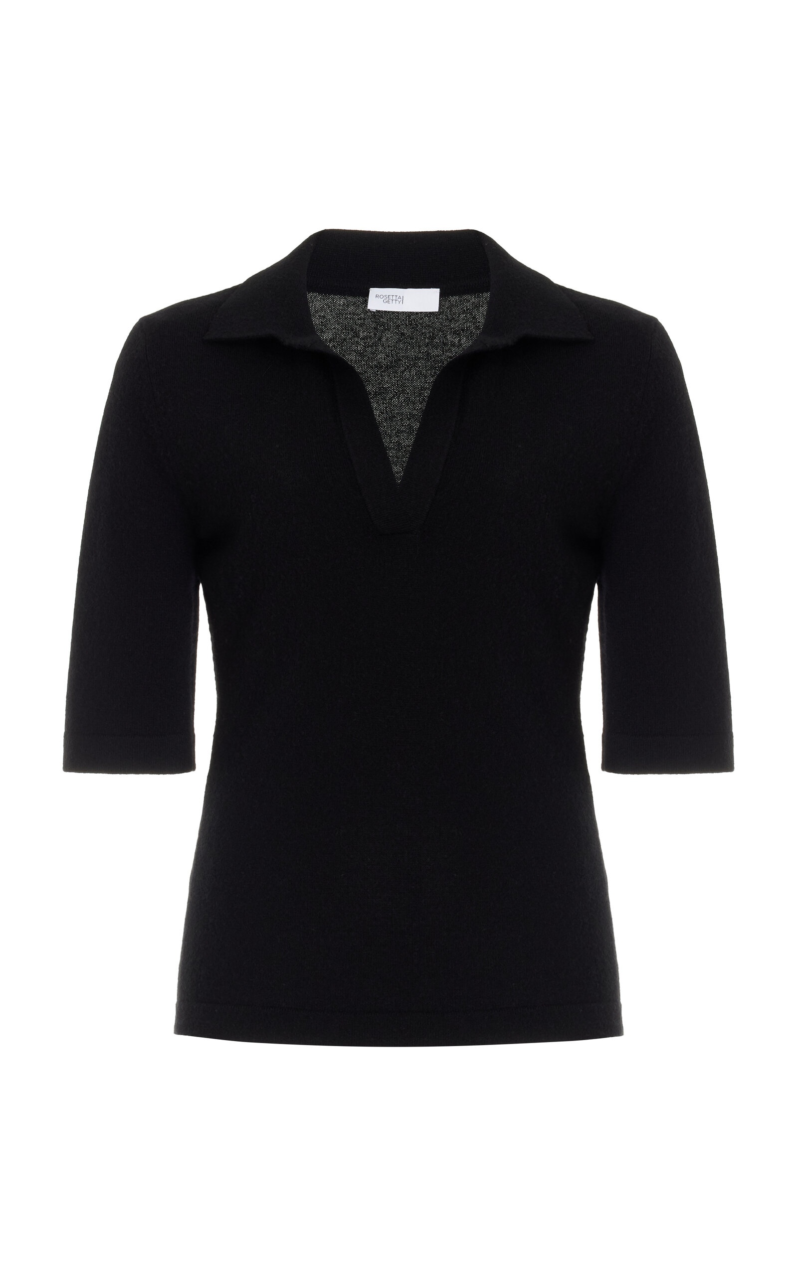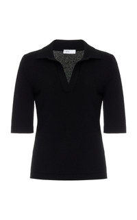 Rosetta Getty believes dressing should be effortless, so her basics are exceptionally versatile. Knitted of mercerized wool cashmere, a lightweight yarn with a plush combed hand and subtle sheen, this staple short-sleeve sweater is a riff on a Rosetta Getty favorite, the classic polo. Reimagined without buttons, it is designed to gently hug the silhouette, softly defining the body’s natural curves. PRODUCT DETAILS - This item is not eligible for expedited shipping - Pre-Fall '24 - Slip on - Composition: 70% Wool, 30% Cashmere - Dry clean - Imported SIZE & FIT - Designed for a regular fit
