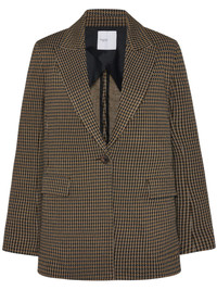 houndstooth-pattern peak-lapels blazer Highlights - Brown/black - Houndstooth pattern - Peak lapels - Front button fastening - Long sleeves - Two front flap pockets - Partial lining Made in United States Composition Viscose 81%, Polyamide 18%, Elastane 1%