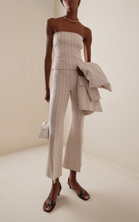 Rosetta Getty believes dressing should be effortless, so her basics are exceptionally versatile. Crafted in the seasonal Pinstripe Interlock Jacquard, this signature pant is designed to flatter the body with a mid-rise and flared leg. Rosetta Getty’s special fabric and the elasticized waist impart ease to the cropped silhouette. An exclusive fabrication for the season, the Pinstripe Interlock Jacquard is similar to Rosetta Getty’s signature Interlock Jersey, which has a slightly slick hand and added elastic to contour the body. PRODUCT DETAILS - Pull on - Composition: 82% Viscose, 13% Polyamide, 5% Elastane - Dry clean - Made in the USA SIZE & FIT - Our model is wearing a size Small - Model is 5'10” with a 31” bust, 23.5” waist, and 33.5” hip - Fits true to size, our fit specialist recommends taking your normal size - Designed for a flared fit