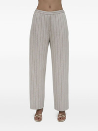 pinstripe pull-on trousers Highlights - Beige - Pinstripe pattern - Pull-on style - High waist - Elasticated waistband Made in United States Composition Viscose 81%, Polyamide 18%, Elastane 1% Washing instructions Read Manufacturer Guidelines