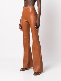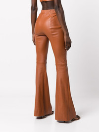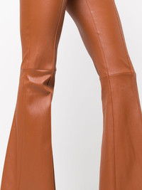 pintuck flared-leg trousers cognac brown lambskin flared high waist elasticated waistband Made in United States Composition Outer: Lambskin 100% Lining: Cotton 98%, Elastane 2% SIZE & FIT Model measurements Height 5 ft 10 in(1.79 m) Bust/Chest 31.1 in(79 cm) Hips 33.85 in(86 cm) Waist 22.83 in(58 cm) FittingInformation This piece fits true to size. We recommend you get your regular size Designed to be fitted at the waist and through the thigh, loose from the knee Made with a mid-weight stretch fabric