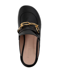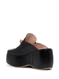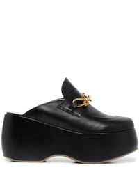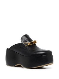platform clog loafers black calf leather gold-tone hardware chain-link detailing round toe platform sole rubber sole slip-on style Made in Italy Composition Leather 100%