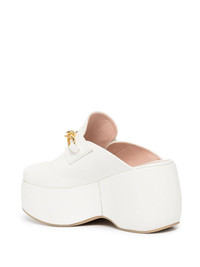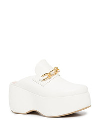 platform clog loafers ivory white calf leather gold-tone hardware chain-link detailing branded leather insole round toe platform sole rubber sole slip-on style Made in Italy Composition Leather 100%