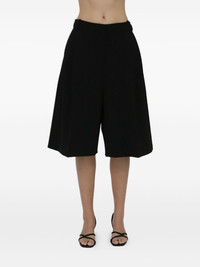 pleat-front shorts Highlights - Black - Wide pleats - High-waisted - Straight hem - Concealed front fastening Made in United States Composition Polyester 89%, Polyurethane 11% Washing instructions Read Manufacturer Guidelines