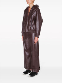 Plonge leather hooded jacket Highlights - Chocolate brown - Lambskin - Drawstring hood - Front zip fastening - Drop shoulder - Long sleeves - Elasticated cuffs - Two side inset pockets - Elasticated hem Made in United States Composition Lamb Skin 100%