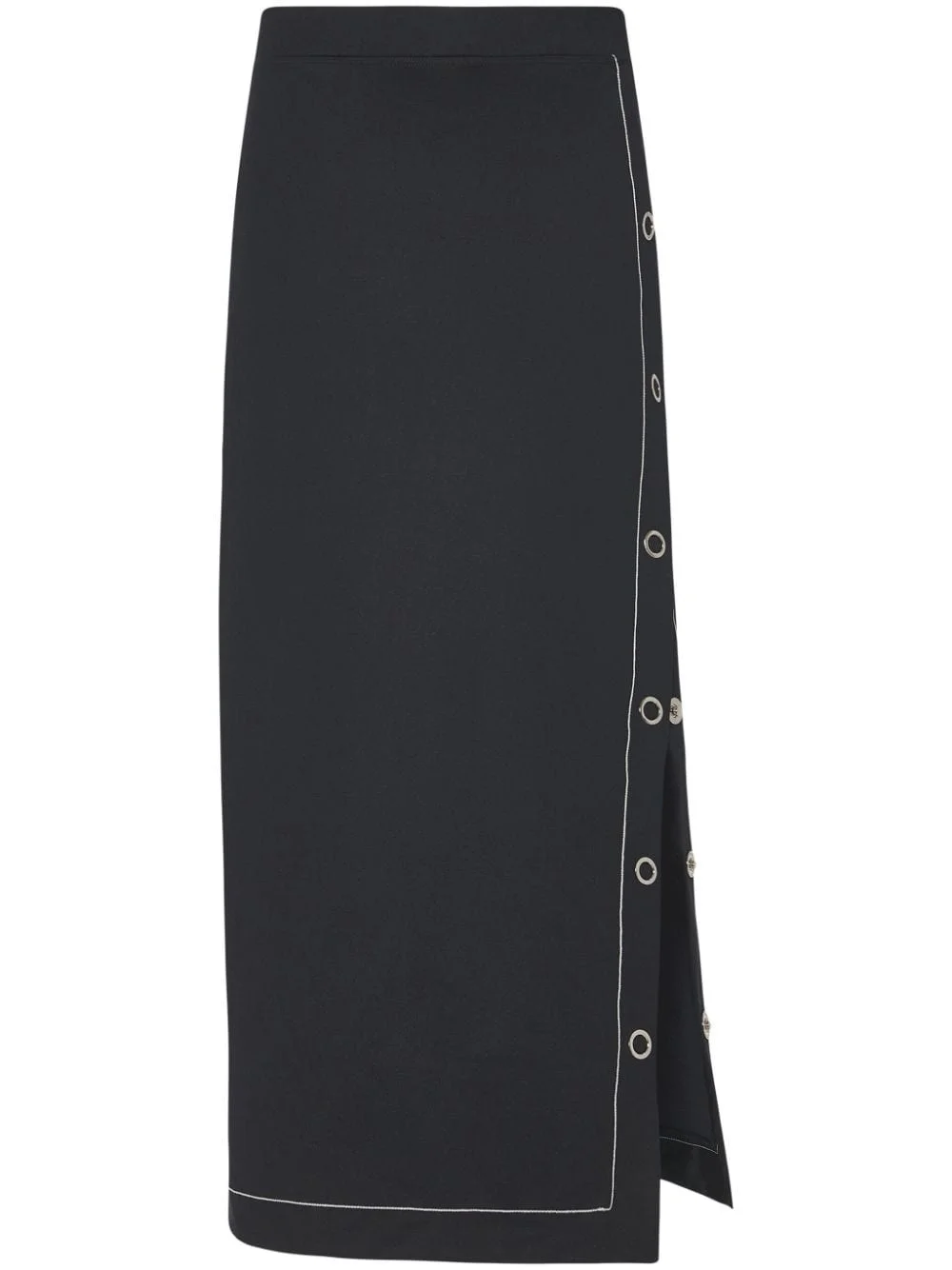 press-stud midi skirt Highlights - Black - Wrap design - Side press-stud fastening - Calf-length - Straight hem Made in United States Composition Nylon 82%, Elastane 18%