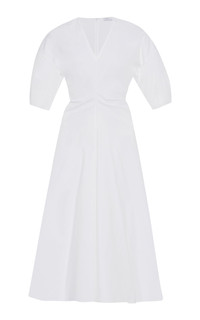 Rosetta Getty believes dressing should be effortless, so her basics are exceptionally versatile. Intricate patternmaking shapes our Torqued Short-Sleeve Dress, cut in smooth Stretch Cotton Poplin to highlight its contours. Designed with a dramatic ruched waist and voluminous sleeves, it has a voluminous A-line skirt. Designed with stretch for shape and ease, this crisp Stretch Cotton Poplin allows for endlessly versatile wear. PRODUCT DETAILS - Concealed zip fastening along back - Composition: 97% Cotton, 3% Elastane - Dry clean - Made in the USA SIZE & FIT - Our model is wearing a size Small - Model is 5'10” with a 31” bust, 23.5” waist, and 33.5” hip - Fits true to size, our fit specialist recommends taking your normal size - Designed for a regular fit