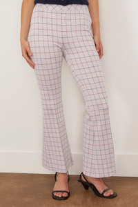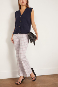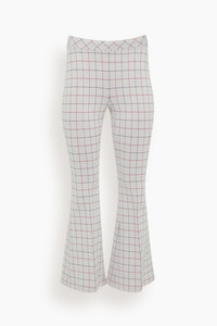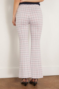 The Rosetta Getty Pull on Cropped Flare in Navy/Red is crafted in the seasonal Striped Windowpane Interlock Jacquard. This signature pant is designed to flatter the body with a mid-rise and flared leg. Rosetta Getty’s special fabric and the elasticized waist impart ease to the cropped silhouette. An exclusive fabrication for the season, the Striped Windowpane Interlock Jacquard is similar to their Interlock Jersey with a slightly slick hand and added elastic to contour the body. It's produced by an Italian mill certified for its sustainable practices by the Associazione Tessile e Salute (Health and Textiles Association) and Forest Stewardship Council (FSC), which uses viscose produced using sustainably sourced and certified FSC wood pulp. FIT DESCRIPTION MODEL MEASUREMENTS - Elasticized waistband - Pulls on - Cropped, flared-leg silhouette - 81% Viscose, 18% Polyamide, 1% Elastane