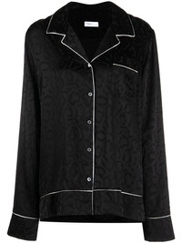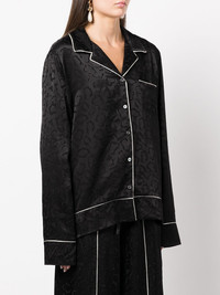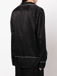Pyjama-style long-sleeve shirt jet black abstract pattern print notched collar front button fastening extra-long sleeves contrasting trim front patch pocket Made in United States Composition Body: Viscose 100% SIZE & FIT Model measurements Height 5 ft 10 in(1.77 m) Bust/Chest 29.92 in(76 cm) Hips 35.03 in(89 cm) Waist 24.01 in(61 cm) FittingInformation This piece fits true to size. We recommend you get your regular size Cut for a loose fit Made with a lightweight non-stretch fabric
