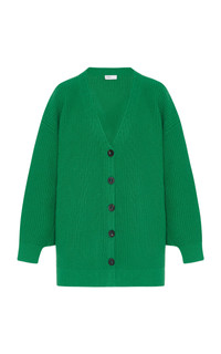 Rosetta Getty believes dressing should be effortless, so her basics are exceptionally versatile. Knit of soft mercerized wool cashmere, this staple cardigan silhouette is designed with an oversized fit and directional ribbing for structure and shape. Wing sleeves lend interest to the style, which features tonal buttons for a refined finish. PRODUCT DETAILS - This item is not eligible for expedited shipping - Resort '25 - Buttons at front - Composition: 70% wool, 30% cashmere - Dry clean - Imported SIZE & FIT - Our model is wearing a size Small - Model is 5'11" with a 31.5" bust, 23" waist, and 35" hip - Designed for a regular fit