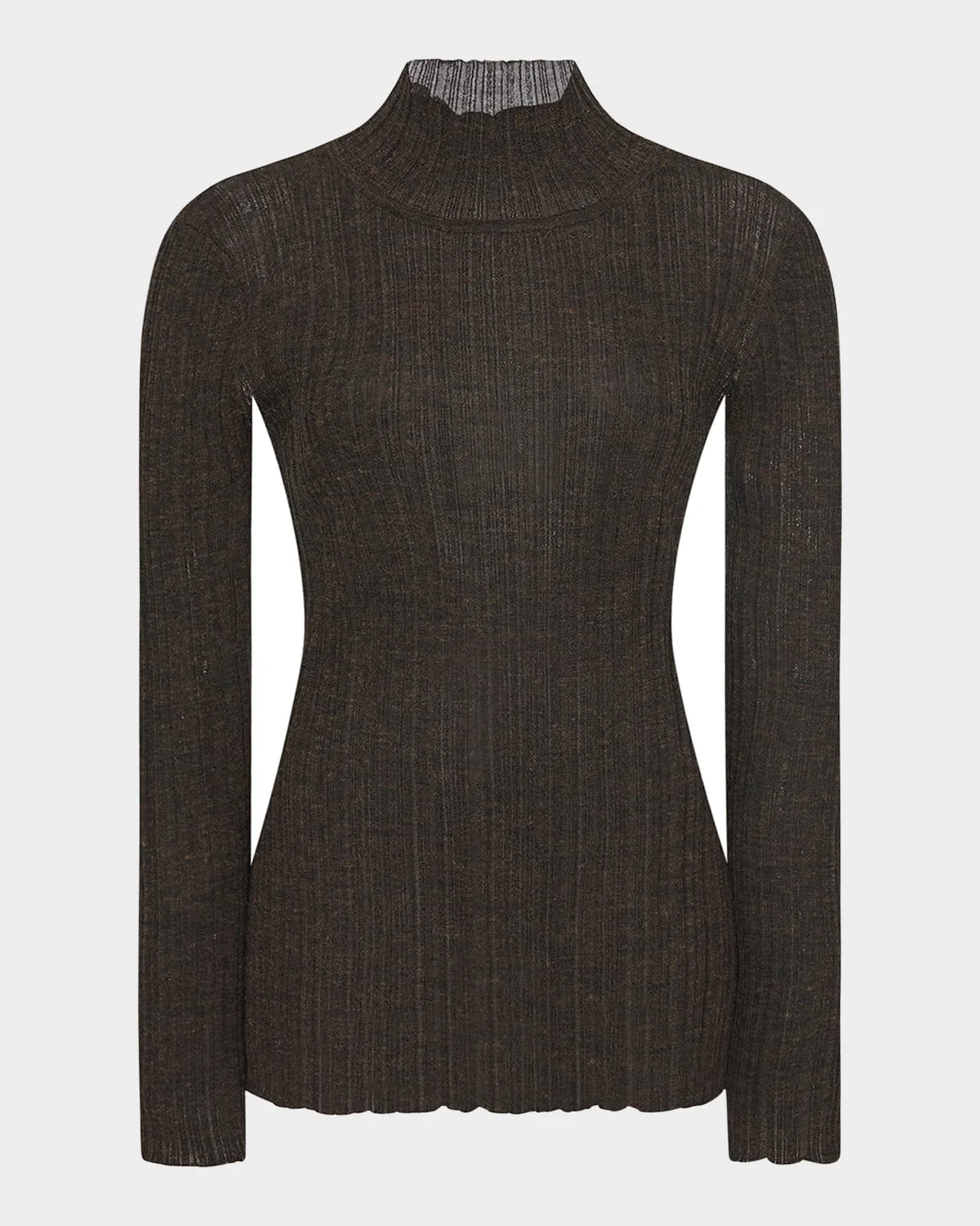 - Crafted from a blend of polyester and alpaca, this gauze top by Rosetta Getty offers a structured and soft silhouette with a slightly fuzzy texture - Mock neckline - Long sleeves - Slim, body-skimming fit and vertical ribbing elongate the silhouette - Hip length - Pullover style - Polyester/animal hair - Imported