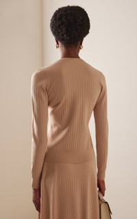 Rosetta Getty believes dressing should be effortless, so her basics are exceptionally versatile. Designed with sheer ribbing, this new cardigan exudes polish with self-covered buttons and a slim crewneck silhouette. Knit of Spring 25's Shiny Viscose yarn, it holds its shape and has a lustrous finish—perfect for layering with the matching Bra Top. PRODUCT DETAILS - This item is not eligible for expedited shipping - Spring '25 - Button-front closure - Composition: 83% Viscose, 17% Polyester - Dry clean - Imported SIZE & FIT - Designed for a fitted cut