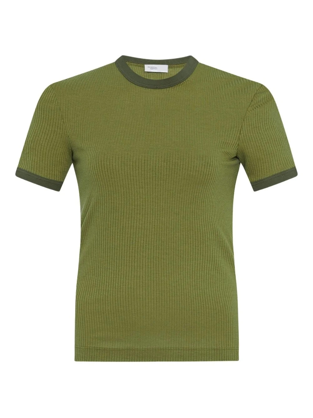 ribbed-knit T-shirt Highlights - Green - Contrasting ribbed trim - Crew neckline - Short sleeves - Fitted design Imported Composition Polyester 60%, Rayon 31%, Elastane 9% Washing instructions Read Manufacturer Guidelines