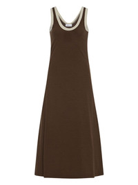 ribbed midi dress Highlights - Brown - Scoop neckline - Contrasting trim - Sleeveless design - Flared hem Imported Composition Polyester 60%, Rayon 31%, Elastane 9% Washing instructions Read Manufacturer Guidelines