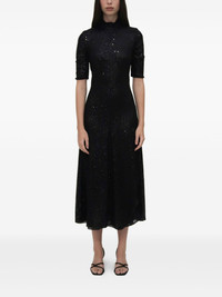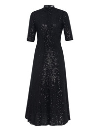 sequin-embellished midi dress Highlights - Black - High neckline - Short sleeves - Fitted bodice - Flared skirt - All-over sequin detailing Imported Composition Polyester 100% Washing instructions Read Manufacturer Guidelines