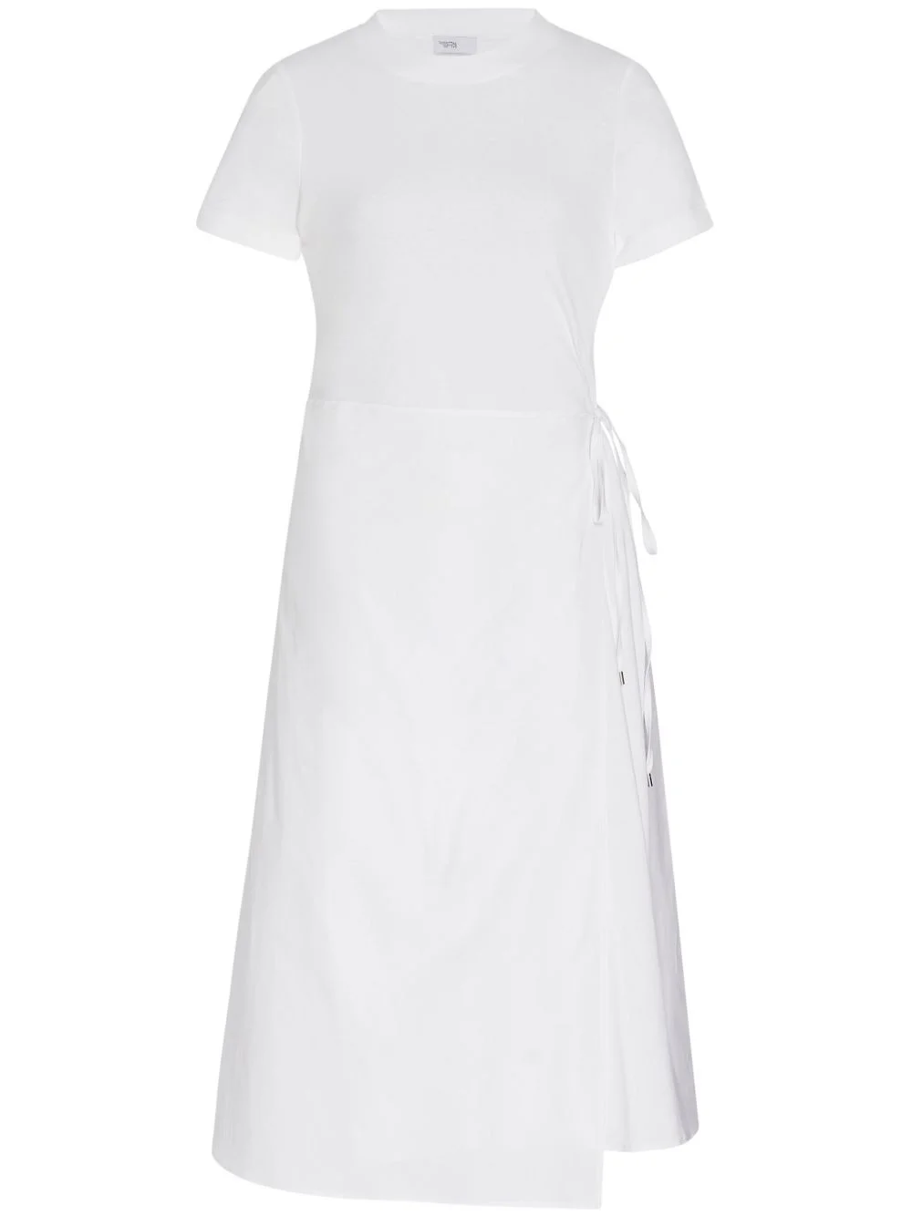 short-sleeve T-shirt dress Highlights - White - Organic cotton - Jersey texture - Panelled design - Short sleeves - Side lace-up fastening - Crew neck - Fitted waistline - Asymmetric hem - Mid-length Made in United States Composition Organic Cotton 100%