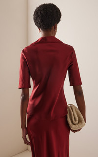 Rosetta Getty believes dressing should be effortless, so her basics are exceptionally versatile. The Bias Polo Top elevates an archetypal silhouette in sumptuous Silk Satin. Cut on the bias, the open-neck style falls elegantly from shoulder to hem, highlighting the body and allowing for versatile styling opportunities. PRODUCT DETAILS - This item is not eligible for expedited shipping - Spring '25 - Slip on - Composition: 100% Silk - Designer color: Berry - Dry clean - Made in the USA SIZE & FIT - Designed for a regular fit