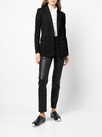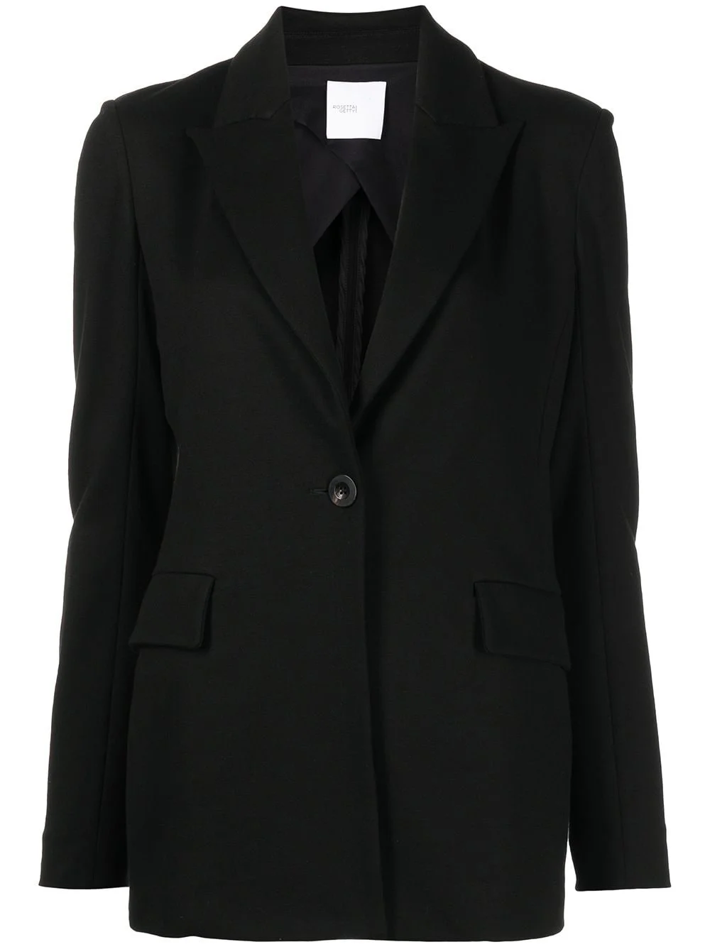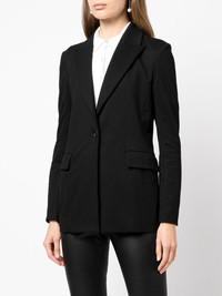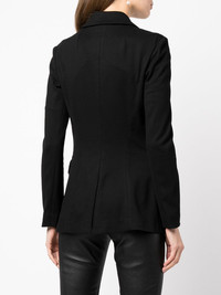 single-breasted cotton blazer black cotton peak lapels front button fastening long sleeves two front flap pockets central rear vent Made in United States Composition Cotton 100% SIZE & FIT Model measurements Height 5 ft 10 in(1.77 m) Bust/Chest 33.85 in(86 cm) Hips 35.03 in(89 cm) Waist 24.01 in(61 cm)