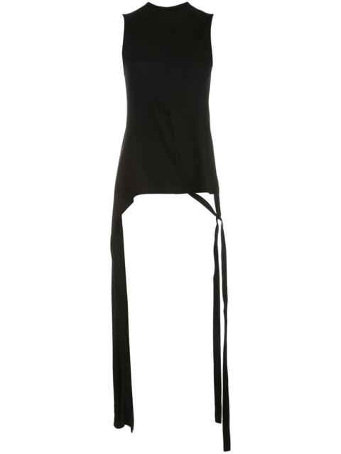 sleeveless split apron T-shirt Highlights - Black - Cotton - Round neck - Sleeveless - Knot detailing - Asymmetric hem Made in United States Composition Cotton 100% SIZE & FIT Model measurements Height 5 ft 10 in(1.79 m) Bust/Chest 31.1 in(79 cm) Hips 33.85 in(86 cm) Waist 22.83 in(58 cm)