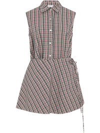 striped shirt Highlights - Ruby red - Short front button fastening - Check pattern - Spread collar - Sleeveless Made in United States Composition Cotton 100%