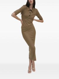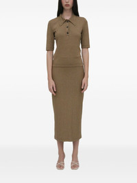 striped short-sleeve polo top Highlights - Brown - Polo collar - Three-button placket - Half sleeves - Ribbed texture Imported Composition Cotton 100% Washing instructions Read Manufacturer Guidelines