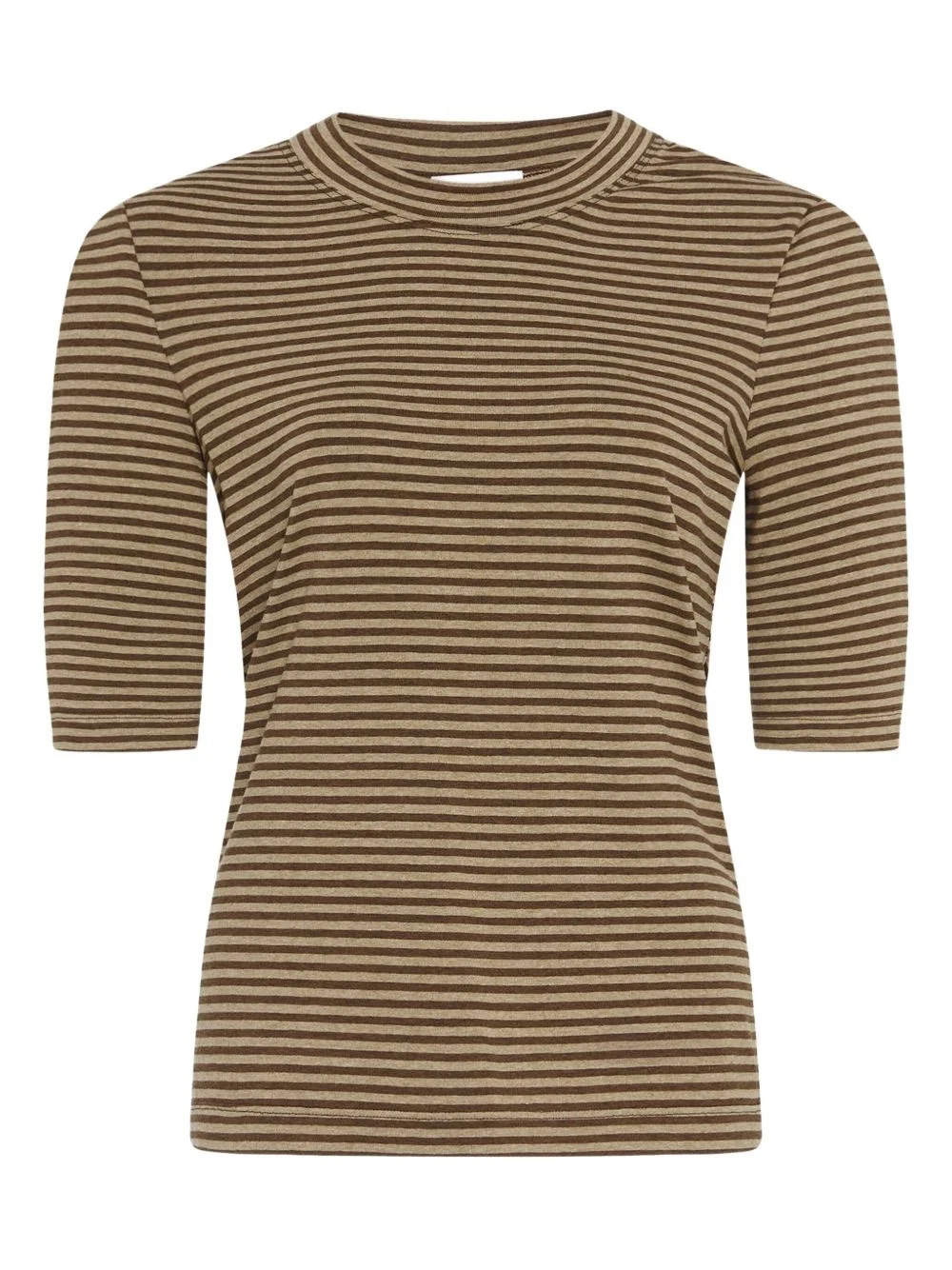 striped short-sleeve T-shirt Highlights - Brown - Horizontal stripe pattern - Round neckline - Half-length sleeves - Relaxed fit Imported Composition Cotton 100% Washing instructions Read Manufacturer Guidelines