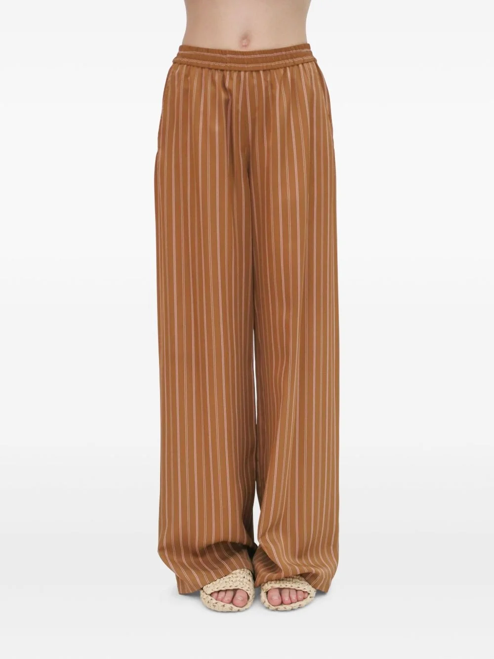 striped trousers Highlights - Camel brown - Elasticated waistband - Two side slit pockets - Flared design Made in United States Composition Viscose 100%