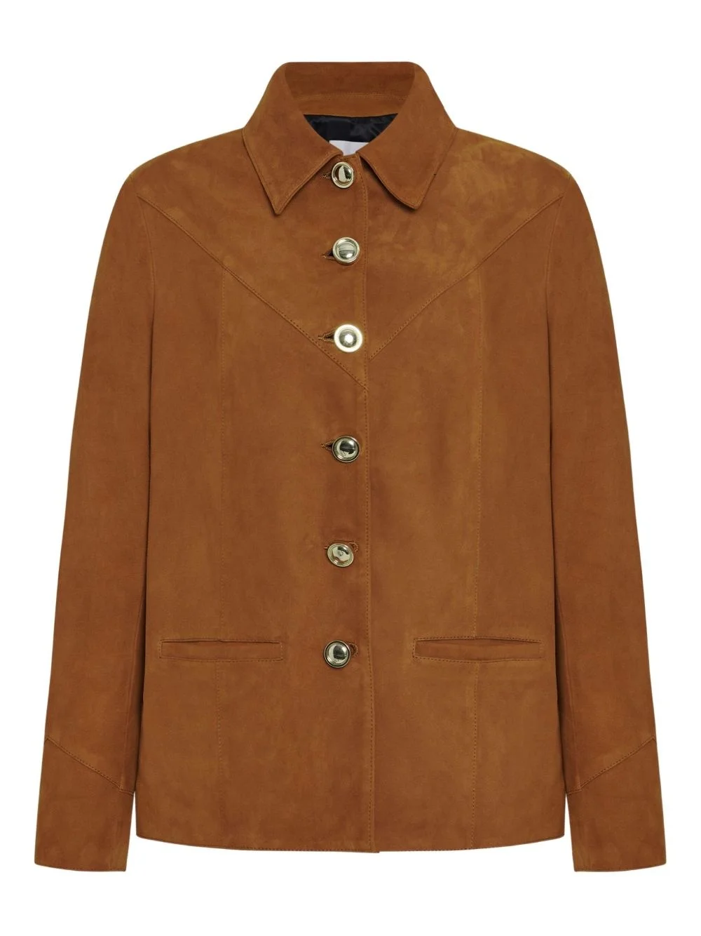 button-embellished suede jacket Highlights - Brown - Pointed collar - Button fastenings - Vertical seam detailing - Two side pockets Imported Composition Lambskin 100% Washing instructions Specialist Cleaning