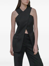 tailored cross-front top Highlights - Black - Wool blend - Tailored design - Cross shoulder straps - Concealed rear zip fastening - Halterneck - Front flap pockets - Straight hem Made in United States Composition Wool 60%, Viscose 40%