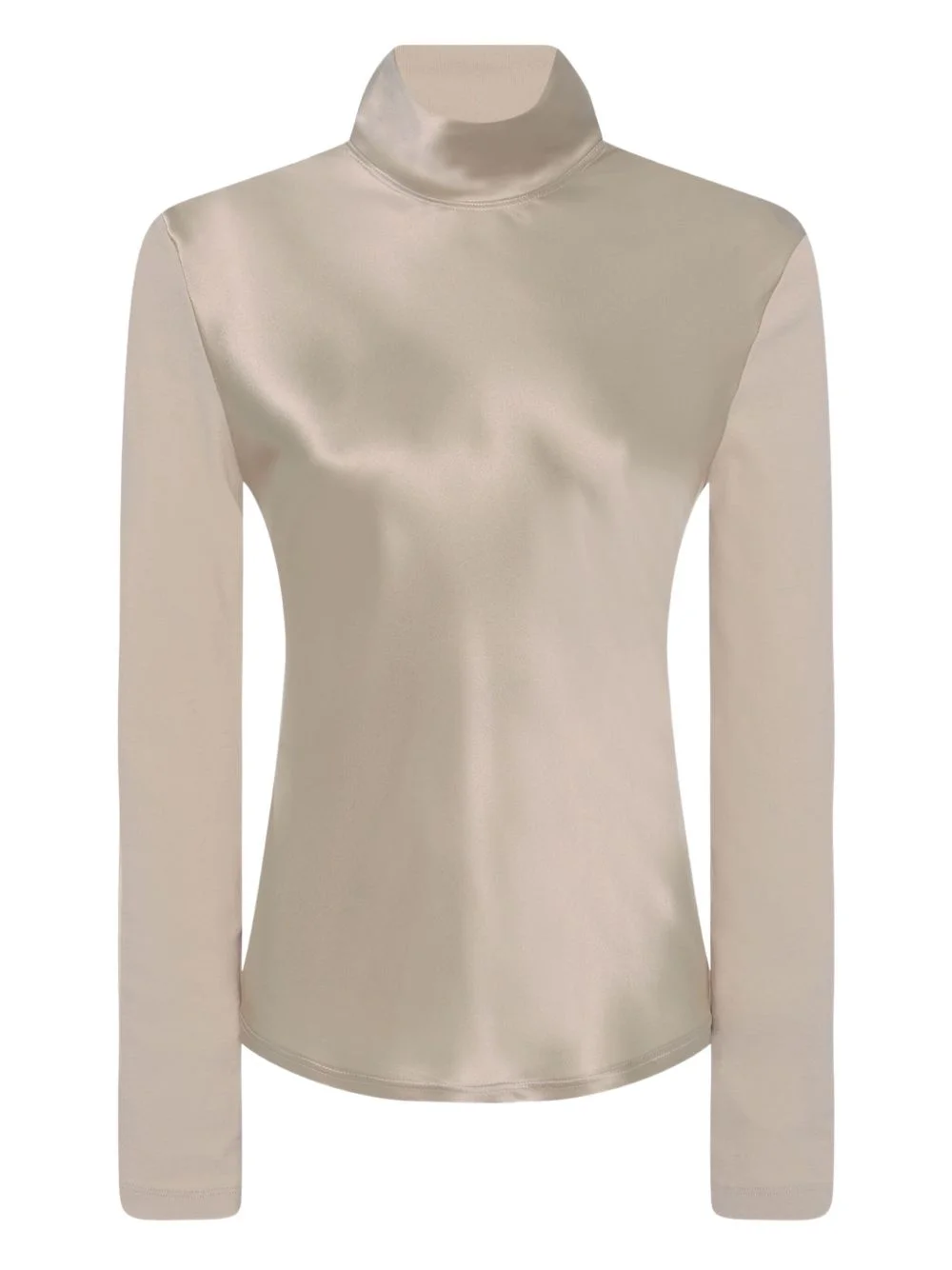 turtleneck combo T-shirt Highlights - Champagne - Turtleneck - Long sleeves - Contrast fabric Made in United States Composition Cotton 100%, Acetate 82%, Viscose 18% Washing instructions Dry Clean Only