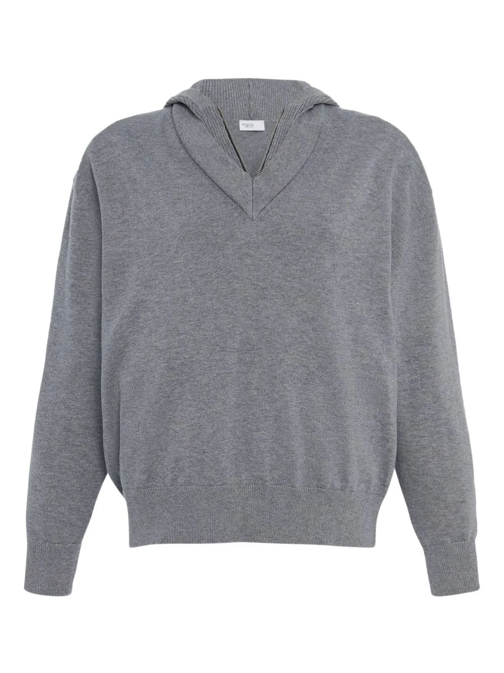 V-neck hoodie Highlights - Medium gray - Front zip fastening - Ribbed cuffs - V-shaped neckline Imported Composition Cotton 70%, Cashmere 30% Washing instructions Read Manufacturer Guidelines