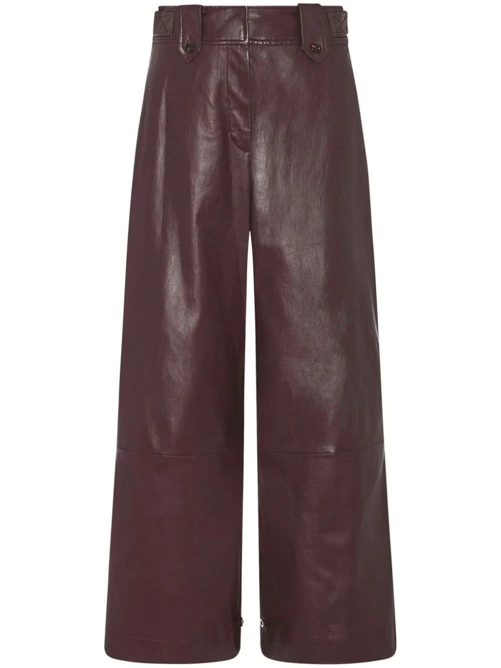wide-leg lambskin trousers Highlights - Chocolate brown - Lambskin - Concealed fly and button fastening - Wide leg - Belt loops - Two side inset pockets - Rear jetted pocket - Straight hem Made in United States Composition Lambskin 100%