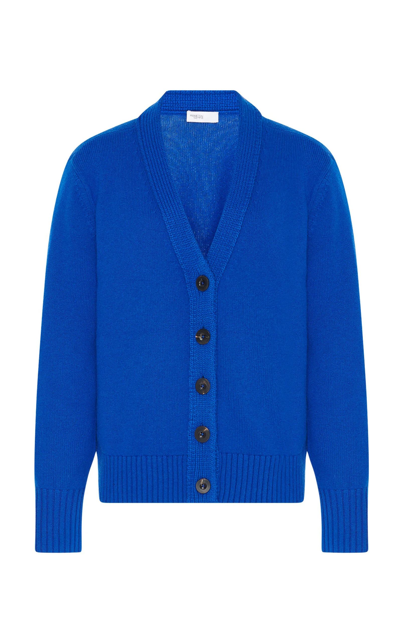 Rosetta Getty believes dressing should be effortless, so her basics are exceptionally versatile. Designed with a timeless V-neck silhouette, Resort 25’s staple cardigan is knitted with soft mercerized wool cashmere. Crafted with ribbed trim, it features contrast buttons and just enough room to layer over coordinating styles. PRODUCT DETAILS - This item is not eligible for expedited shipping - Resort '25 - Buttons at front - Composition: 70% wool, 30% cashmere - Dry clean - Imported SIZE & FIT - Our model is wearing a size Small - Model is 5'10" with a 31" bust, 23.5" waist, and 33.5" hip - Designed for a regular fit