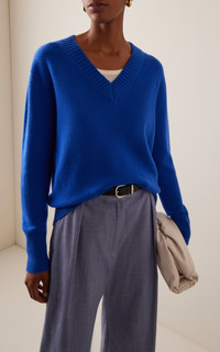 Rosetta Getty believes dressing should be effortless, so her basics are exceptionally versatile. Knit of soft mercerized wool cashmere, this oversized V-neck sweater has the perfect silhouette for layering. A wide V-neck lends allure, while the boxy fit through the bodice allows for comfortable movement and ease. PRODUCT DETAILS - This item is not eligible for expedited shipping - Resort '25 - Slip on - Composition: 70% wool, 30% cashmere - Dry clean - Imported SIZE & FIT - Our model is wearing a size Small - Model is 5'11" with a 31.5" bust, 23" waist, and 35" hip - Designed for a regular fit