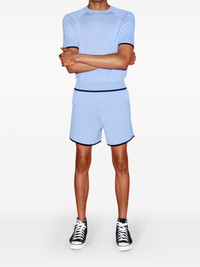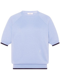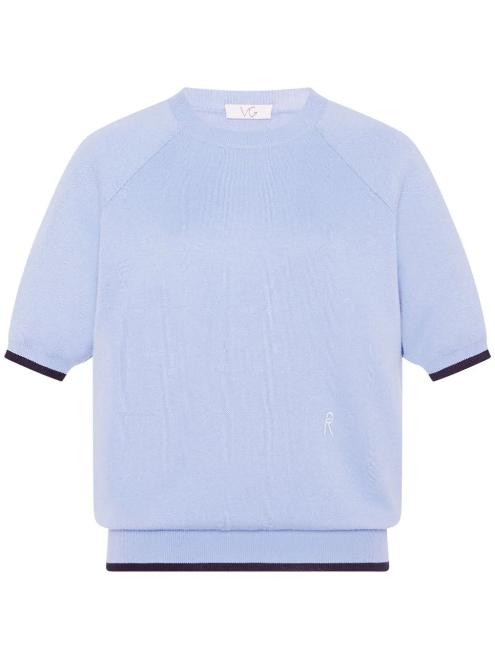 x Violet Getty knitted top Highlights - Light blue - Wool-cotton blend - Knitted construction - Embroidered logo to the front - Stripe detailing - Ribbed trim - Crew neck - Short raglan sleeves - Straight hem - When buying this unisex item, keep in mind that it is graded in standard men's sizing. Imported Composition Wool 55%, Cotton 45% Washing instructions Dry Clean Only